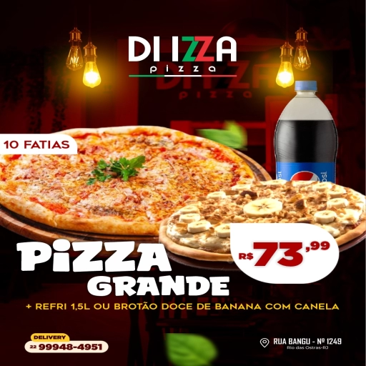 1 Pizza grande (até 2 sabores) + 1 brotão doce + refrigerante.
